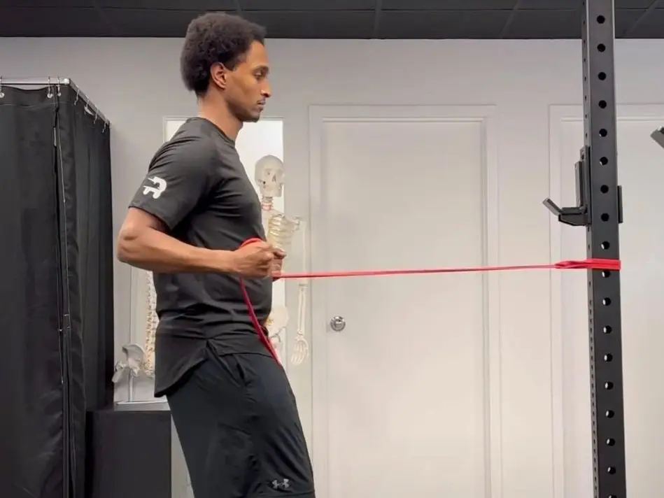 Anchor the band to a secure point at face height. Grab the ends with both hands, palms facing down. Stand with your feet shoulder-width apart. Your arms should be extended in front of you. Pull the band towards your face, keeping your upper arms parallel to the floor. Focus on squeezing your shoulder blades together. Slowly return to the starting position. This exercise is a fantastic addition to resistance band back exercises. It targets your upper back and rear delts effectively. Add face pulls to your back workout with resistance bands for improved posture and shoulder health. These movements also complement lower back resistance band exercises to create a well-rounded routine.
