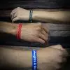 Black wristband with White writing, Blue wristband with White writing, Red wristband with Black writing