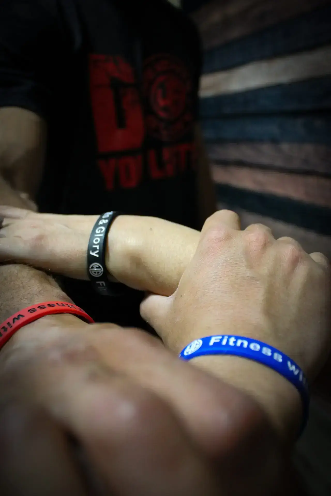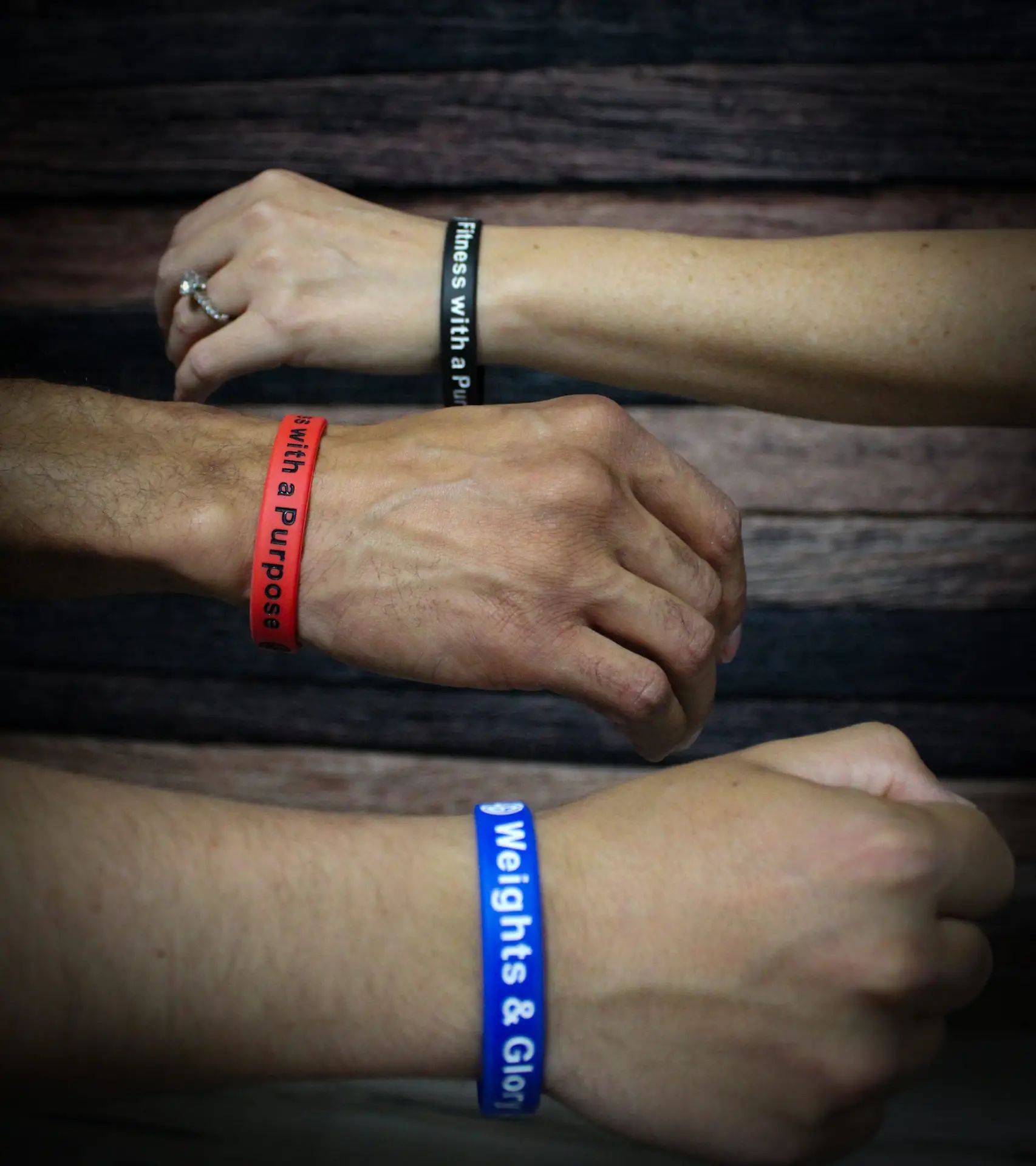 Weights & Glory Wristbands with embossed motto “Fitness with a Purpose”